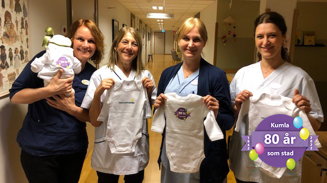 - Det känns fint att Kumla Kommun lyfter sina yngsta medborgare när Kumla fyller 80 år. Roligt att vi på Familjens Hus, genom Region Örebro län, får vara med på detta och lämna en body till alla jubileumsbebisar vid besöken hos barnhälsovården, säger medarbetarna på Familjens Hus.