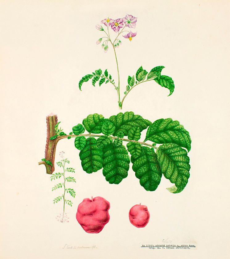 Illustration av Henriette Sjöberg, planschverket Sveriges kulturväxter, Nordiska museet. Inlaga sid 495.
