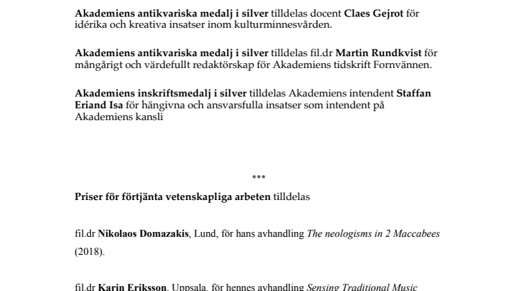 Samtliga pristagare och medaljörer 2019 presenteras på Vitterhetsakademiens hemsida.