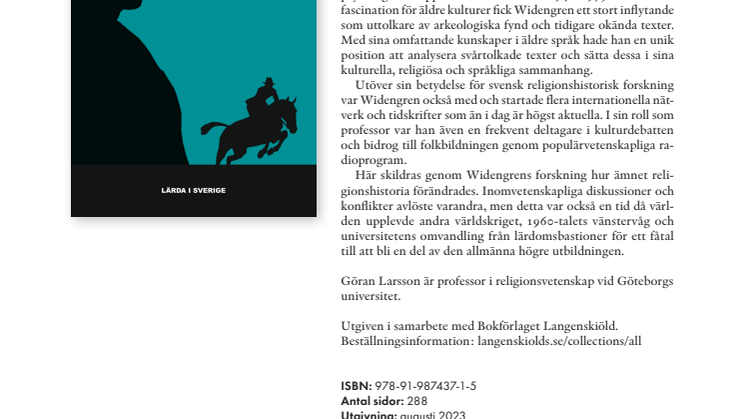 – Mycket av Widengrens forskning håller inte måttet idag, både metod och ämnet i sig har förändrats. Men det vi kan lära oss av honom är betoningen på popularisering, att delta aktivt i kulturdebatten och diskussionen. Precis som Widengren menar jag att om religionsforskning ska ha ett värde så måste vi också ha ett förklarande anspråk, säger Göran Larsson.