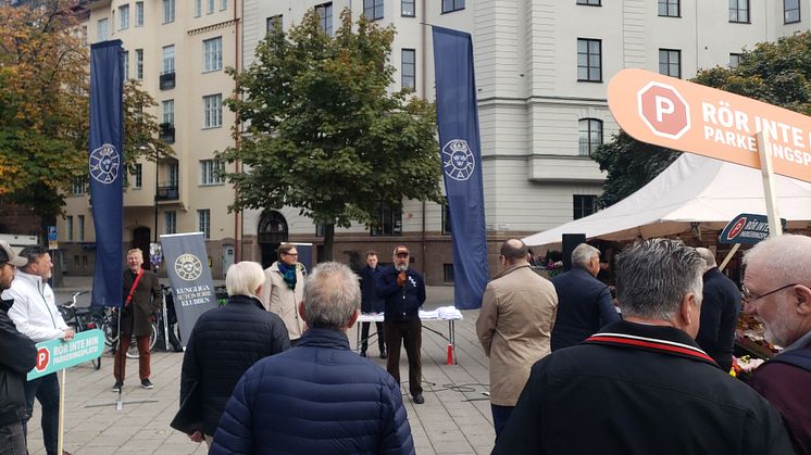 I ett höstligt Stockholm anordnade KAK en manifestation för att visa hur viktig tillgången till parkering är. Många intresserade och engagerade stockholmare stannade till vid Karlaplan för att lyssna och diskutera frågan. På plats fanns även Mikael Valier (KD) som är gruppledare i trafiknämnden. Det blev ett bra och konstruktivt samtal.