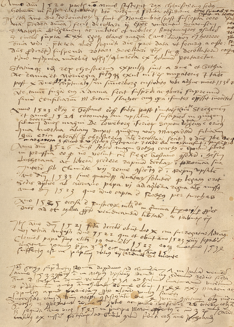Svensk översättning av Olaus Magnus anteckningar om Stockholms blodbad (längst upp på sidan):