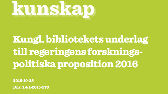 Se över pliktlagstiftningen och inrätta en samlad ingång för den svenska vetenskapliga publiceringen. Det är två av de fem förslag som Kungl. biblioteket, KB, lyfter fram till regeringen inför dess arbete med den forskningspolitiska propositionen. Regeringen har bett myndigheter och organisationer att komma med underlag och synpunkter inför den forskningsproposition som man avser att presentera hösten 2016.