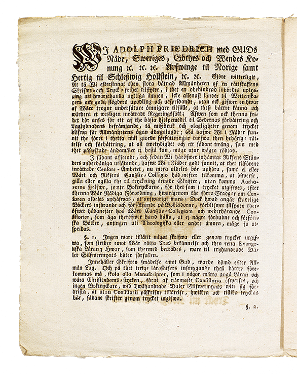 Kongl. Maj:ts Nådige Förordning, Angående Skrif- och Tryck-friheten