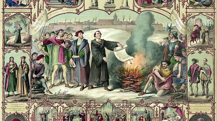 I år är det 500 år sedan Martin Luther spikade upp sina 95 teser på slottskyrkans dörr i Wittenberg. Vad har reformationen betytt för Sverige och Europa? Den här kvällen diskuteras Luthers och reformationens roll utifrån bland annat ett idé- och mediehistoriskt perspektiv.