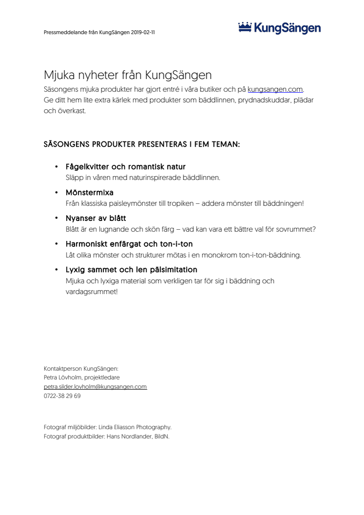Säsongens mjuka produkter har gjort entré i våra butiker och på kungsangen.com. Ge ditt hem lite extra kärlek med produkter som bäddlinnen, prydnadskuddar, plädar och överkast. Säsongens produkter presenteras i fem teman: