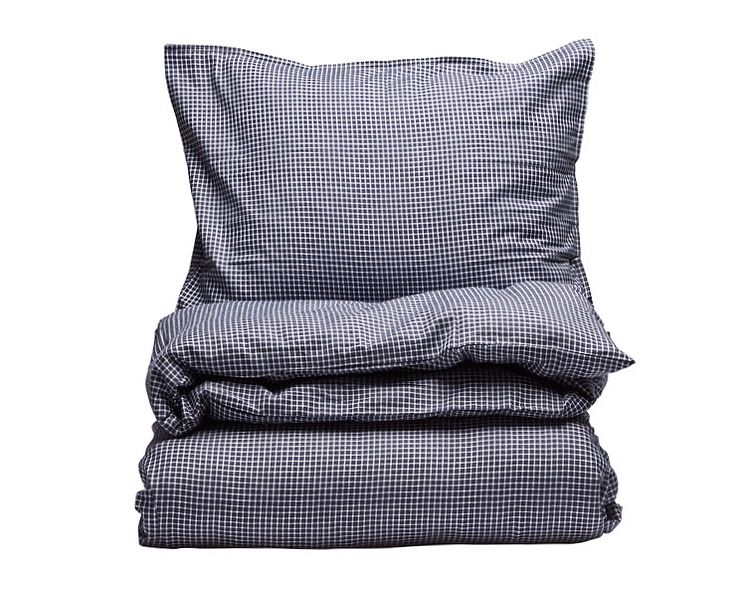 Supermjukt påslakanset i garnfärgad bomull av hög kvalitet. Vit botten med smala ränder i marint och grått. Påslakanet har öppningar i påslakanets övre hörn för smidigare byte av täcke.