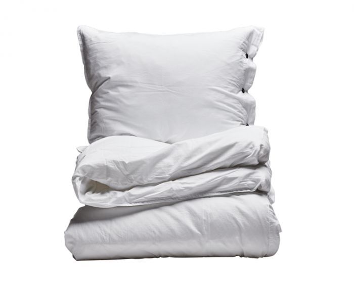 Enfärgat vitt påslakanset med svarta dekorativa knappar. Påslakanet har öppningar i påslakanets övre hörn för smidigare byte av täcke. Finns i flera färger!
