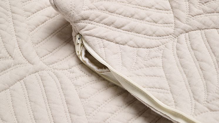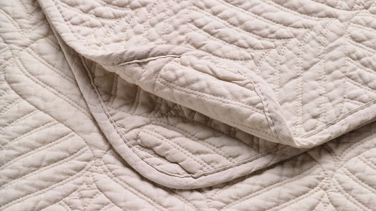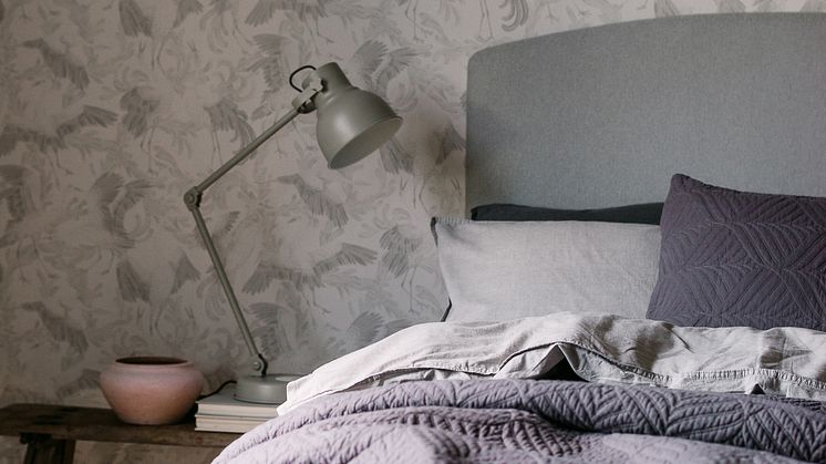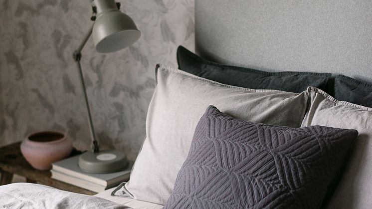 Låt olika mönster och strukturer mötas i en monokrom ton-i-ton-bäddning. Välj strukturmönstrat för att väcka bäddningen och tillföra mer kontraster.