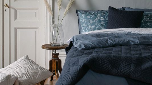 Prydnadskuddar i 100% strukturmönstrad bomull. Finns i färgerna beige, grå, blå samt matchande överkast.