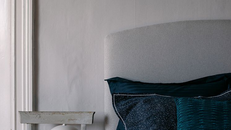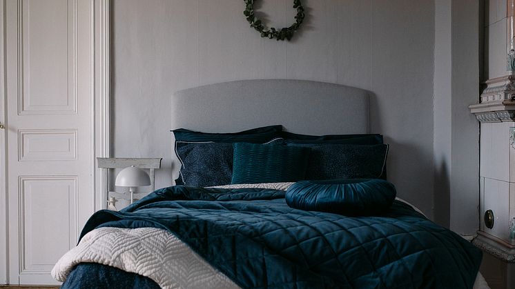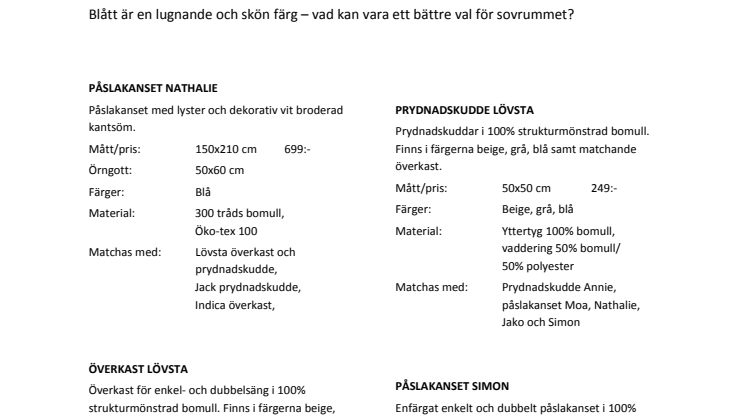 Finns i färgerna beige, grå, blå samt matchande prydnadskuddar.