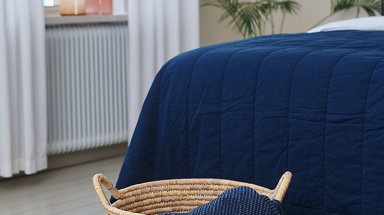 KungSängens marknadschef Anna Björkegren ser fram emot lanseringen, som kommer bestå av påslakanset, kuvertlakan, örngott, överkast, plädar och en kimono - alla i vårens och sommarens trendfärger blått, vitt och orange.