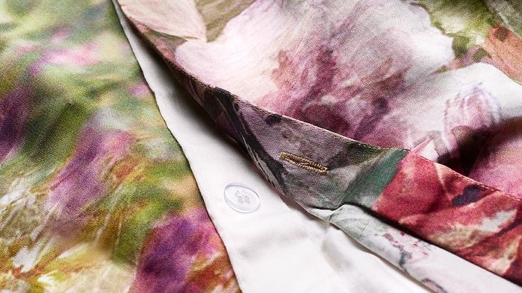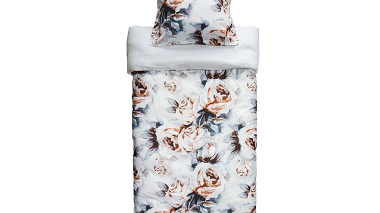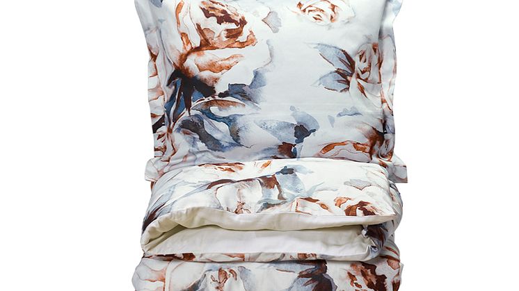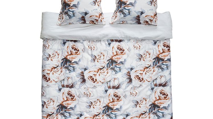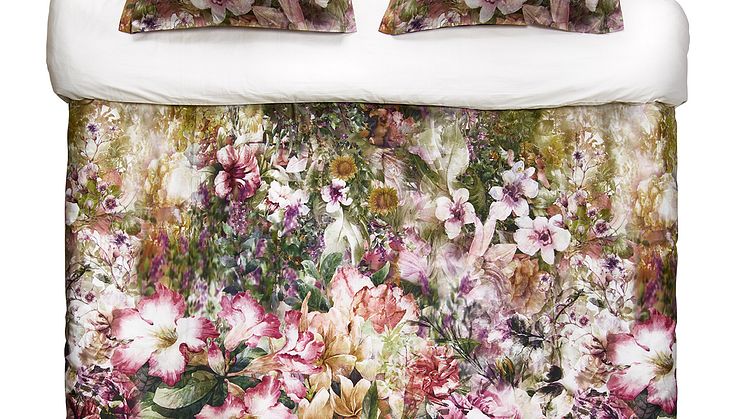 Den enfärgade baksidan ger bäddningen harmoni och balanserar upp mönstret.
