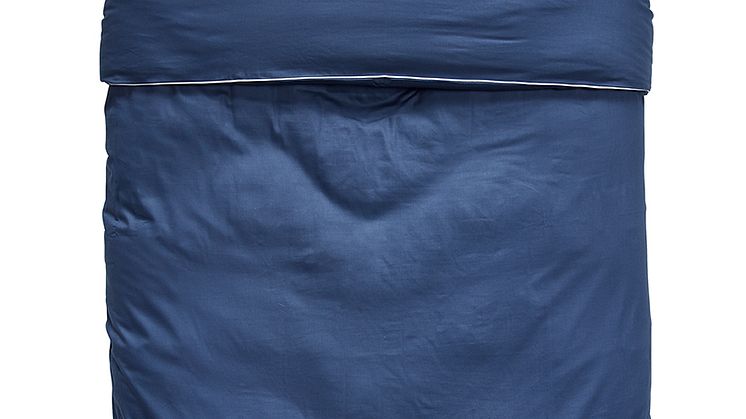 Sommarklassiskt marinblått påslakanset med vit passpoal.