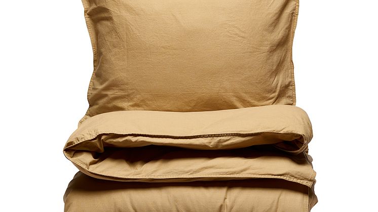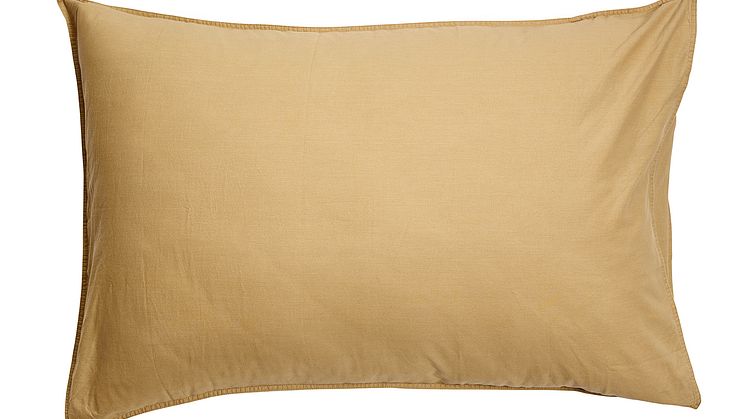 Påslakanset och örngott i härligt varm senapsgult och trendig koppar med dekorativa jeanssömmar. Örngotten finns i flera olika storlekar för att passa extra stora kuddar och hotellkuddar. 100% mjuk tvättad bomull.