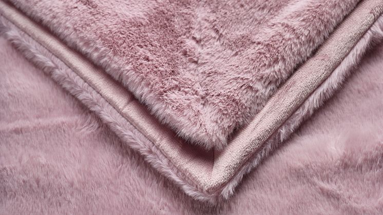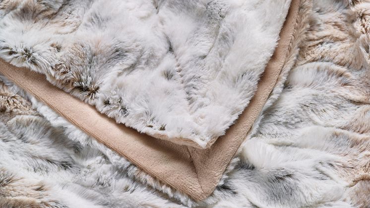 Pläd i pälsimitation i 100% polyester. Finns i färgerna ljusgrå, brun och rosa.