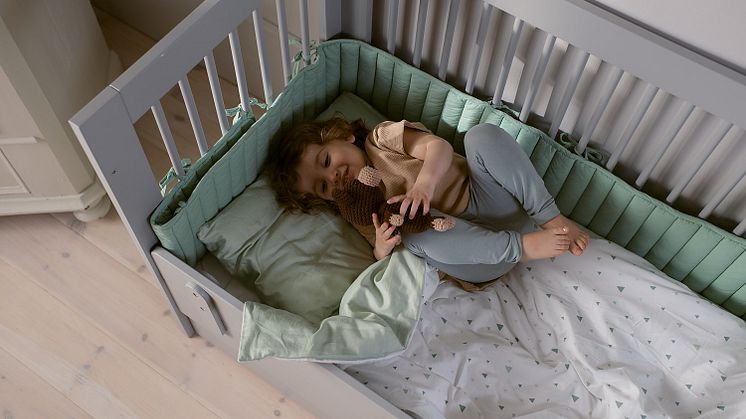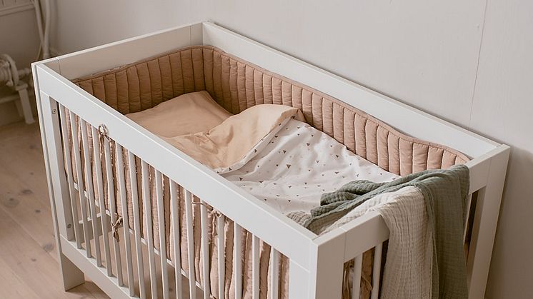 Sortimentet består av en flexibel spjälsäng med flera smarta tillval, barnmadrass, kudde, täcke, sängkläder, madrasskydd och babynest.