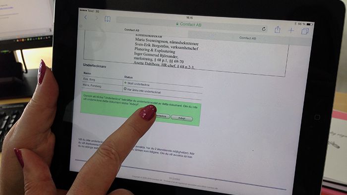 Protokollet från kommunstyrelsens arbetsutskott den 31 mars blev ett av de första protokollen att justeras elektroniskt efter den dom från i höstas som visade att det är fritt fram.