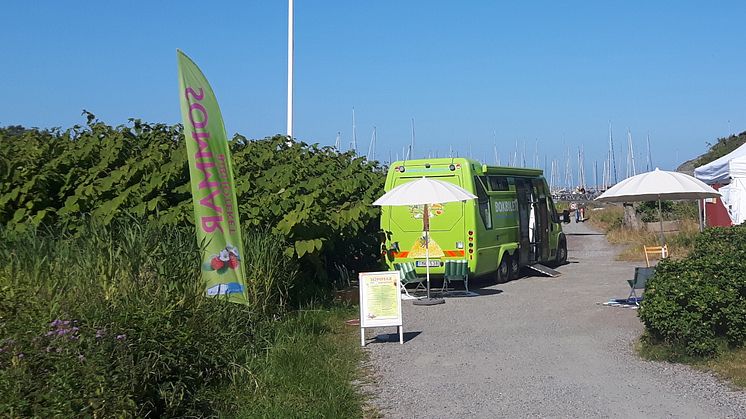 I sommar kör biblioteksbilen till olika stränder i Kungsbacka kommun och till besöksmålen Fjärås bräcka och Tjolöholm.