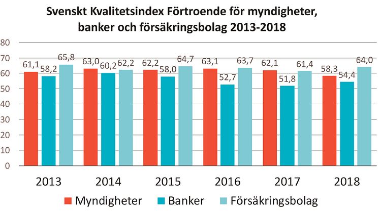 Svensk Kvalitetsindex har mätt kunders upplevelse i en mängd branscher de senaste trettio åren. Förtroendet för exempelvis den finansiella sektorn har sjunkit stadigt sedan den senaste finanskrisen. Återkommande incidenter och negativ mediapublicitet har bidragit till detta.