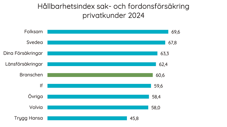 Årets resultat från SKI Hållbarhetsindex för försäkringsbranschen baseras på ett samlat index där kunder har fått betygsätta hur hållbara de upplever sina försäkringsbolag. För privatkunder redovisas ett sammanvägt snitt för sak- och fordonsförsäkring, medan på företagssidan redovisas segmenten separat.