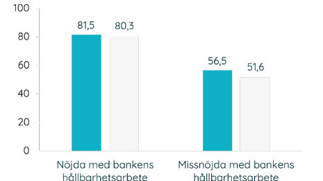 – Vi ser att en stor andel av kunderna inte har någon uppfattning om sin banks hållbarhetsarbete, även om de själva är engagerade. Detta kan mycket väl vara en kommunikationsfråga, och här har branschen som helhet en stor förbättringspotential.