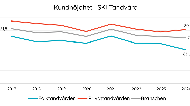 Ända sedan Svenskt Kvalitetsindex (SKI) började mäta kundnöjdhet inom tandvården har betygen varit mycket höga. I år noteras dock en fortsatt minskning i nöjdheten för branschen i stort även om nivåerna fortsatt är höga med ett nöjdhetsindex på 74,7. Det är värt att notera att skillnaden mellan privattandvården och folktandvården är större än på mycket länge.