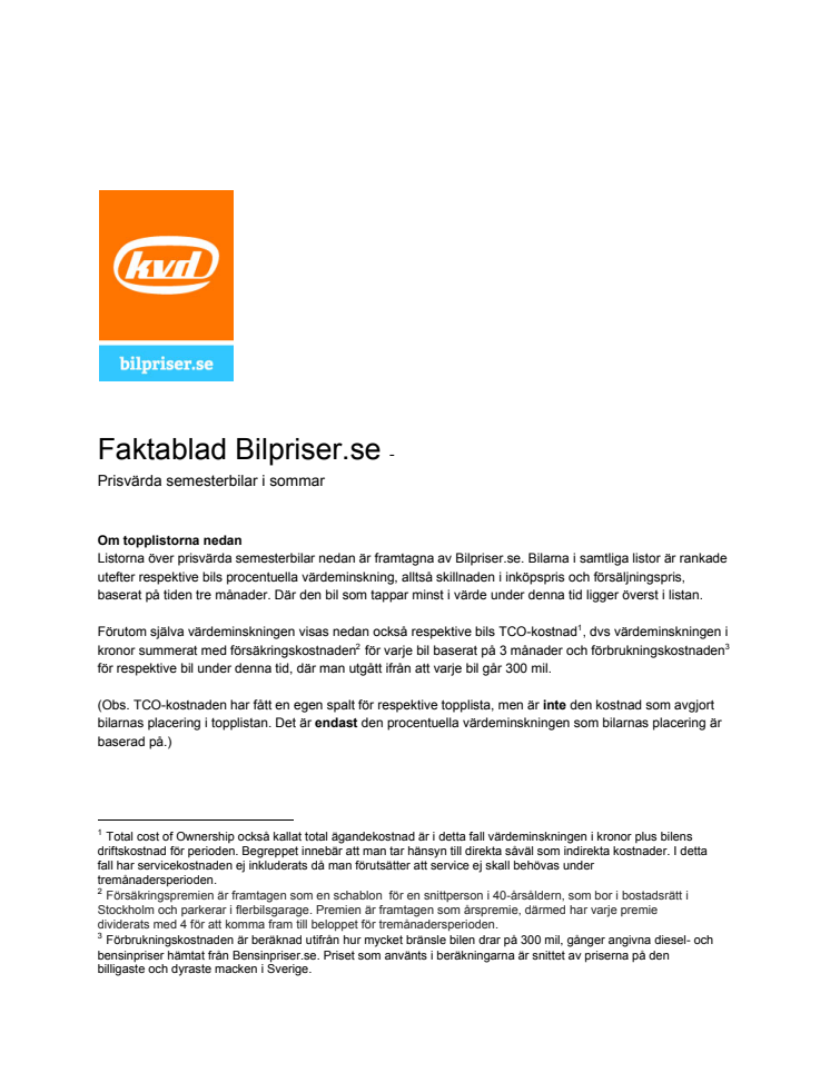 Faktablad semesterbilen