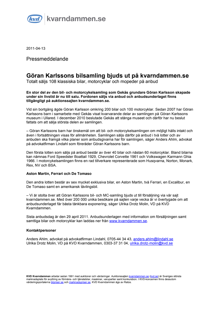 Göran Karlssons bilsamling bjuds ut på kvarndammen.se