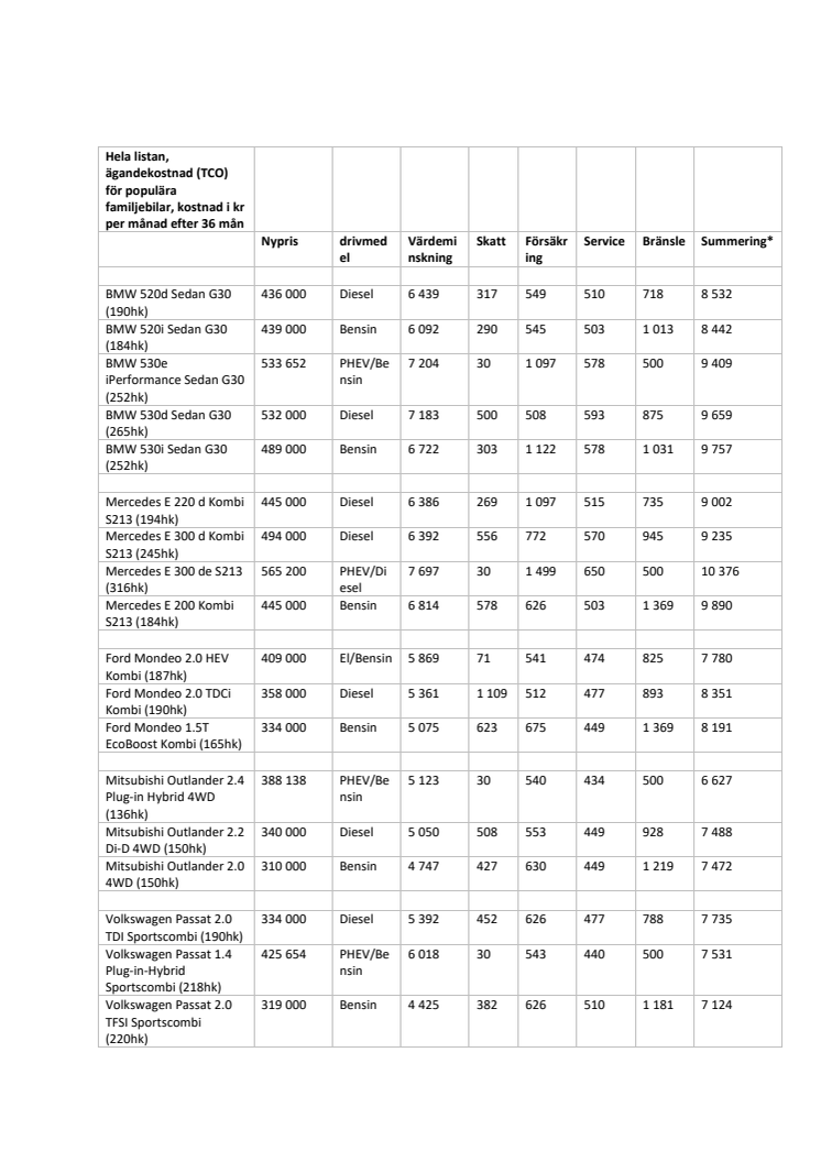 TCO - familjebilar september 2019