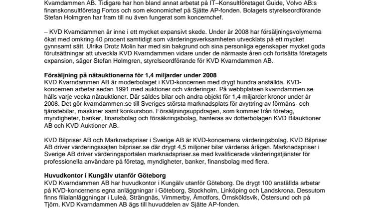 KVD Kvarndammen AB. Samtidigt blir hon koncernchef för KVD-koncernen.