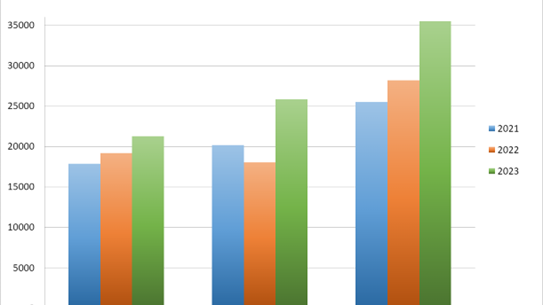 2023 började med en väldigt stark tillväxt för luft/vattenvärmepumpar. En vändning kom under kvartal tre och under sista kvartalet så backade luft/vattenvärmepumparna med 26% jämfört med 2022. Bergvärmepumpar såldes bra under hela året och i kvartal fyra så stod de för en ökning om 20%. Frånluftsvärmepumparna ser ut att ha gått väldigt bra också men här döljer sig förändringar i beräkningsunderlaget.