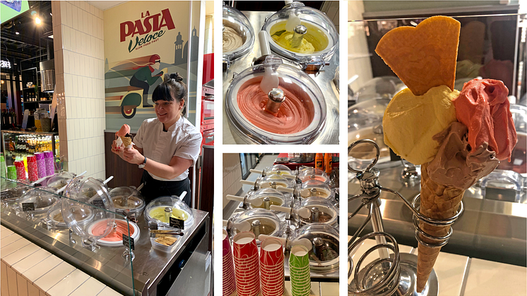 Här serveras färsk glass direkt ur glassmaskinen framför kunderna! - Lyckad nyhet i La Pasta Veloces sortiment