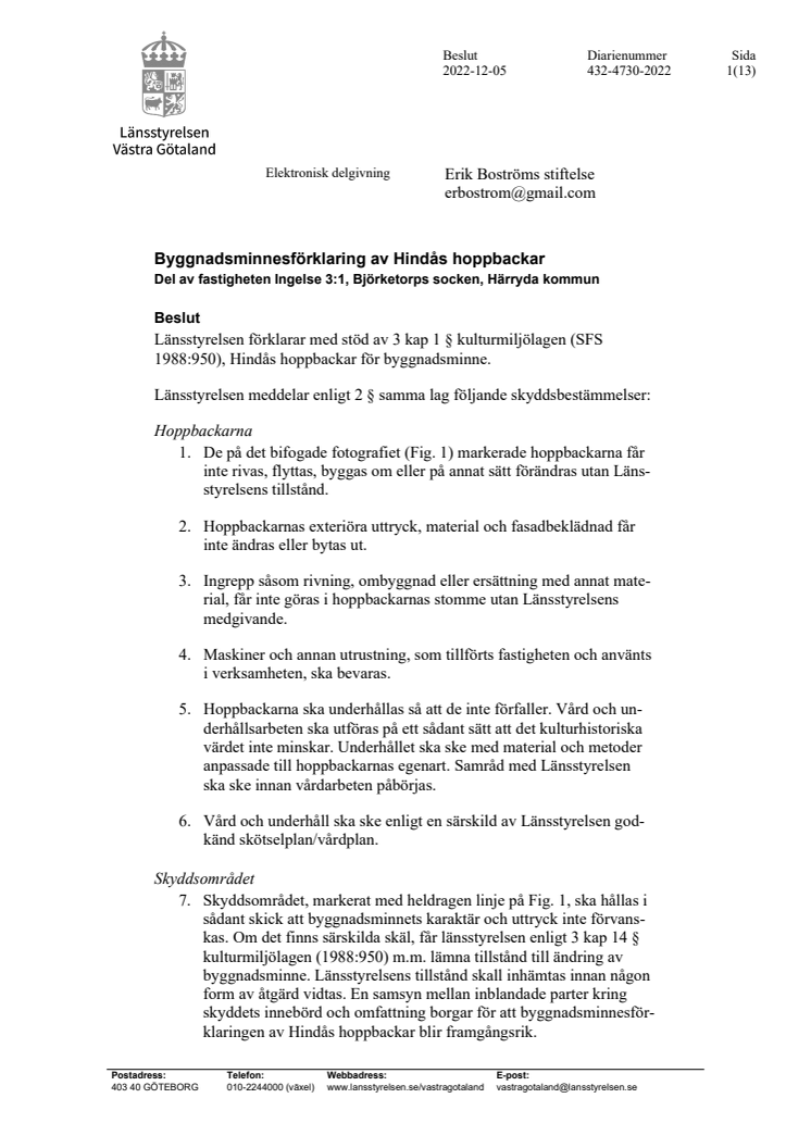 Beslut byggnadsminne hoppbackar Hindås