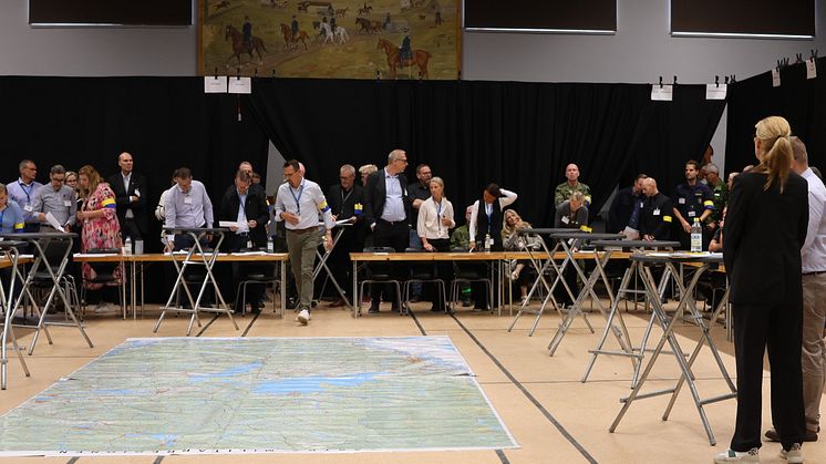Samling runt karta på HRTLÖ 2024, totalförsvarsövning.