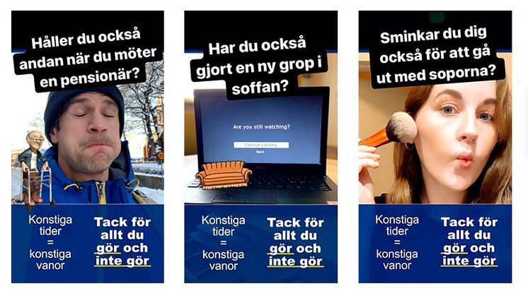 Kampanjen Konstiga tider = konstiga vanor rullar igång på Sveriges 21 länsstyrelsers Instagram- och Facebookkonton och som Instagram stories i början av februari. Materialet kommer även att vara tillgängligt för kommuner och andra aktörer som vill sprida det i sina kanaler.