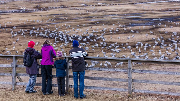 På www.hornborga.com kan du ta del av mer information om tranorna vid Hornborgasjön och se webbkameror från området.