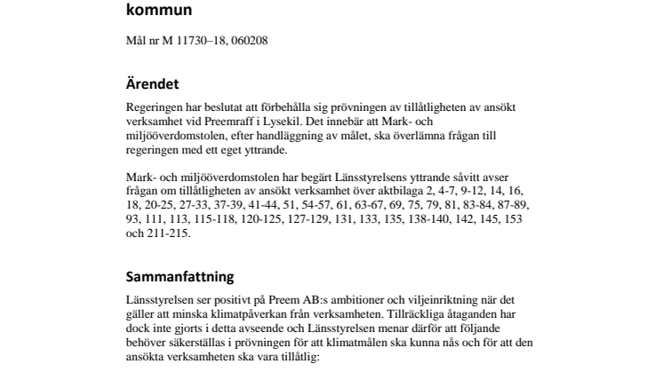 • Regionalt perspektiv på tillåtlighetsprövning av Preemraff Lysekil
