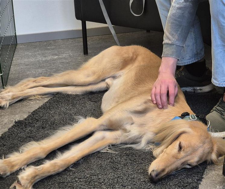 Skolhunden Sky för att trygga eleven under sin undervisning