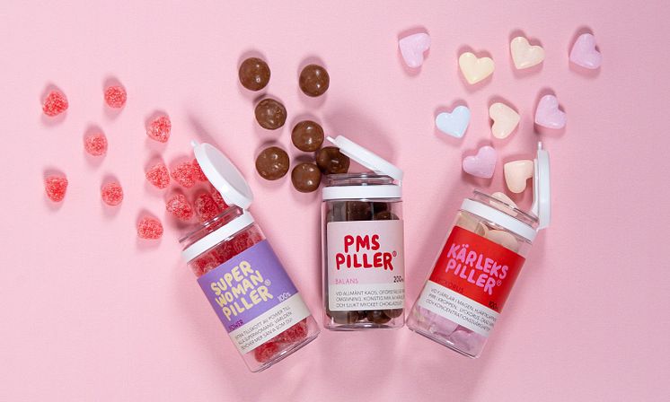 Delar av sortimentet har funnits tidigare men kommer nu i en nytappning. Rolig och charmig ”medicin*” för alla tillfällen, perfekta att ge som present eller som en boost till sig själv. Burkarna innehåller små smarriga godisar, till exempel hjärtformade, stjärnformade, stavar eller kulor i olika färger och smaker. Godiset i Superwoman, Pms och Bakispiller är tillverkat i Sverige, innehållet i Kärlekspiller i EU.