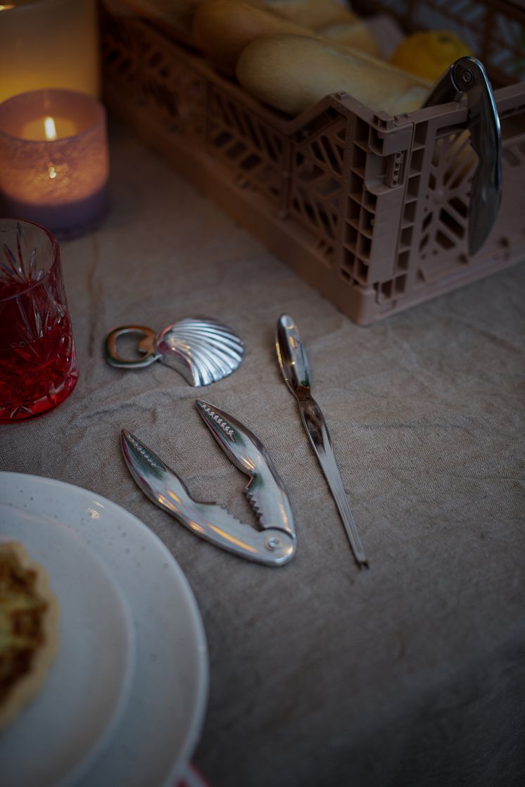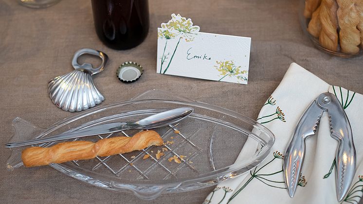 Kollektionen går i en mogen färgskala och stilspråket är inspirerat av Frankrike. Dukningen är tjusig, där bordet dekoreras med porslin, bestick och dekorationer inspirerade av havet. Flaska och assiett i formen av en fisk, kräftklor som bestick och flasköppnare dekorerad med en snäcka - för att nämna några av kollektionens vackra produkter.
