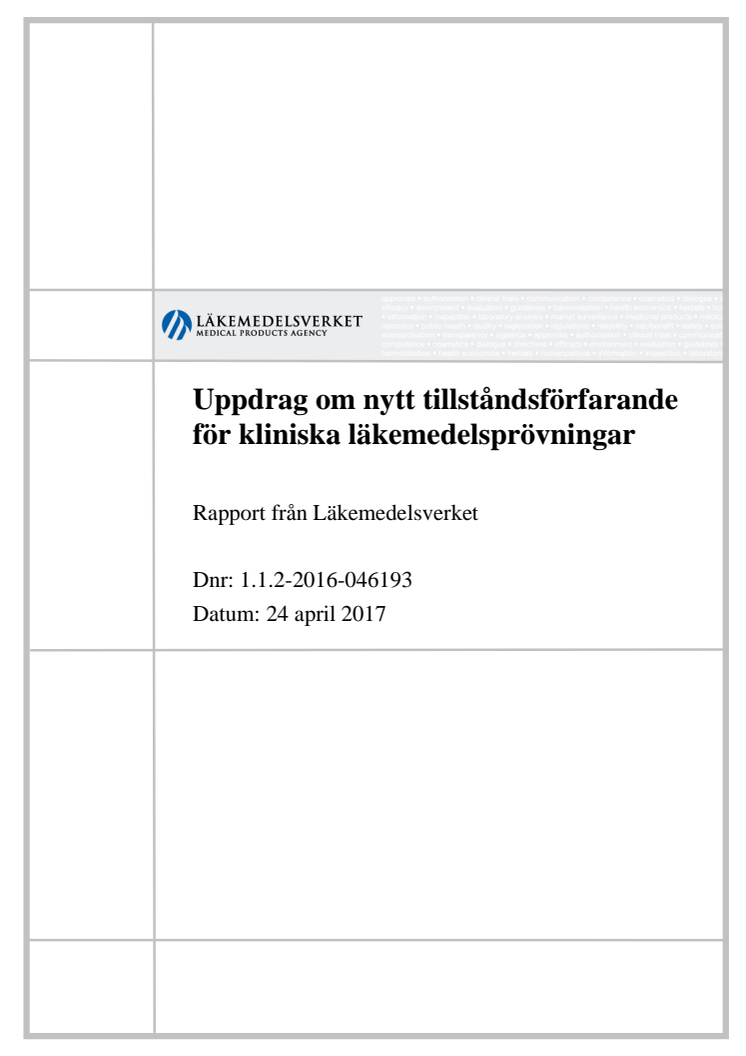 Rapport Uppdrag om nytt tillståndsförfarande för kliniska läkemedelsprövningar