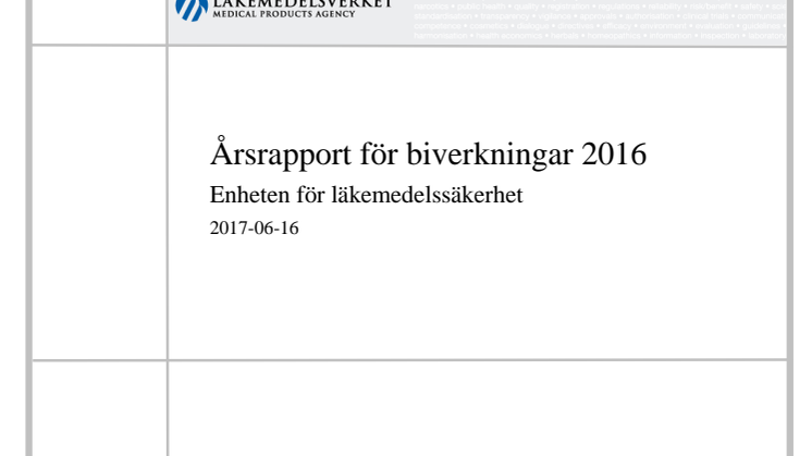 Under 2016 tog Läkemedelsverket emot 8 465 biverkningsrapporter. Av dessa kom 75 procent från den svenska hälso och sjukvården och resterande från patienter/konsumenter.