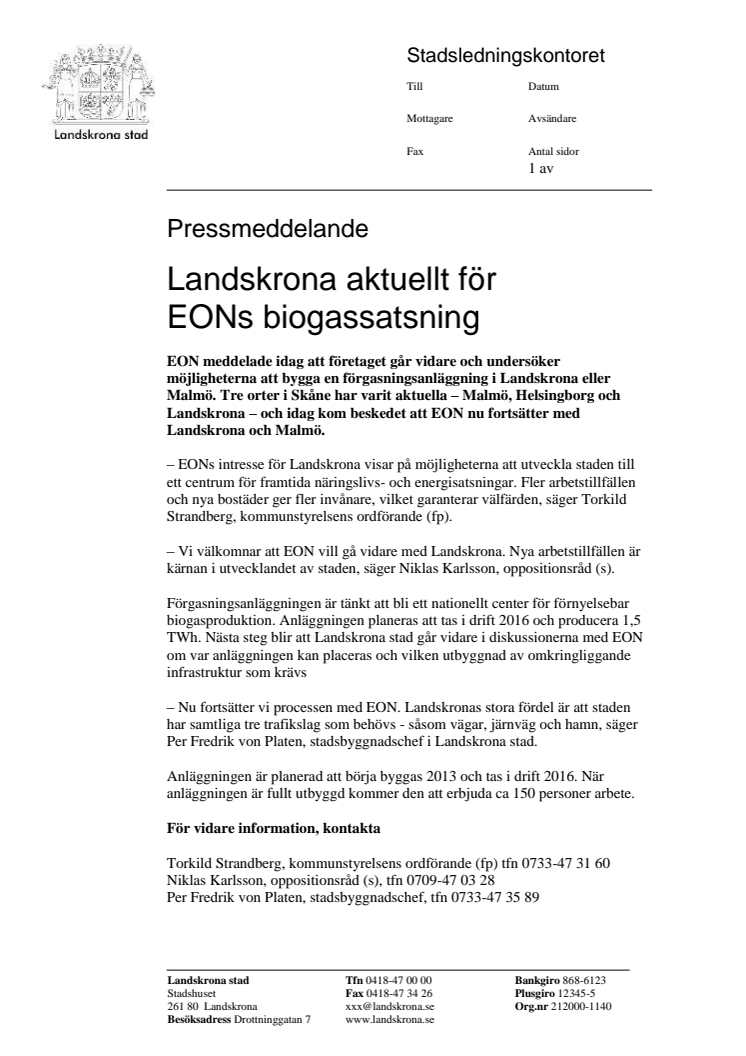 Landskrona aktuellt för EONs biogassatsning