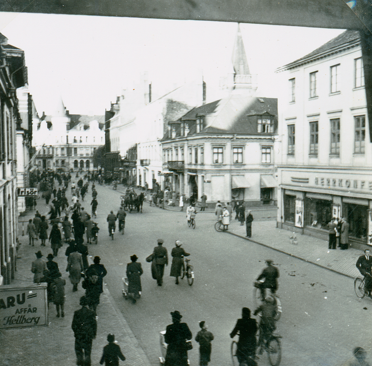 1943 Danska flyktingar på väg till Rådhuset i Landskrona.png