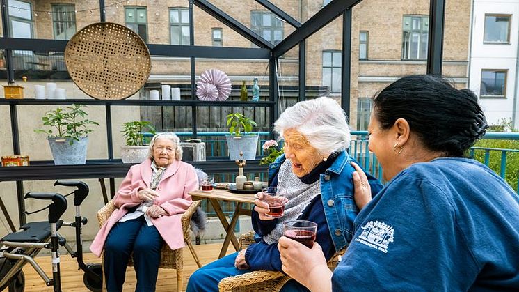 På de bifogade bilderna ser ni Paula Persson (rosa kappa), Märta Geijron (jeansjacka) och Alija Cancar (undersköterska), samtliga från Södra Långgatans äldreboende.