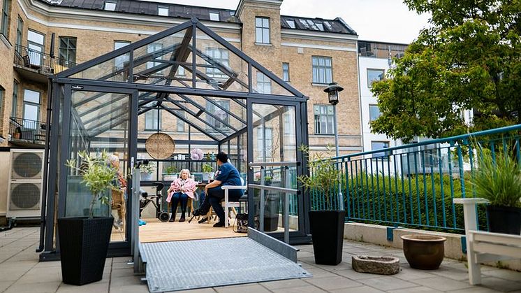 I år får alla som bor på äldreboende i Landskrona ett extra rum. I växthusen kan de äldre koppla av, träffa anhöriga och få möjlighet att odla. Växthusen är en del av en större satsning på att skapa trivsamma utomhusmiljöer.