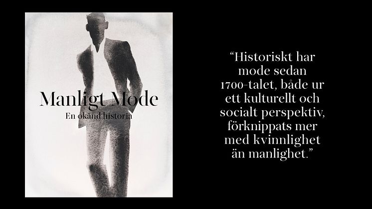 ”Manligt mode – En okänd historia är ett vederhäftigt verk om ett ämne som alltför länge lämnats därhän. Rikt illustrerad och med både initierade och personliga texter av internationella och svenska experter får mannens klädsel här sin rättmätiga genomlysning från 1500-talet till idag”, säger bokens creative advisor Tom Hedqvist.