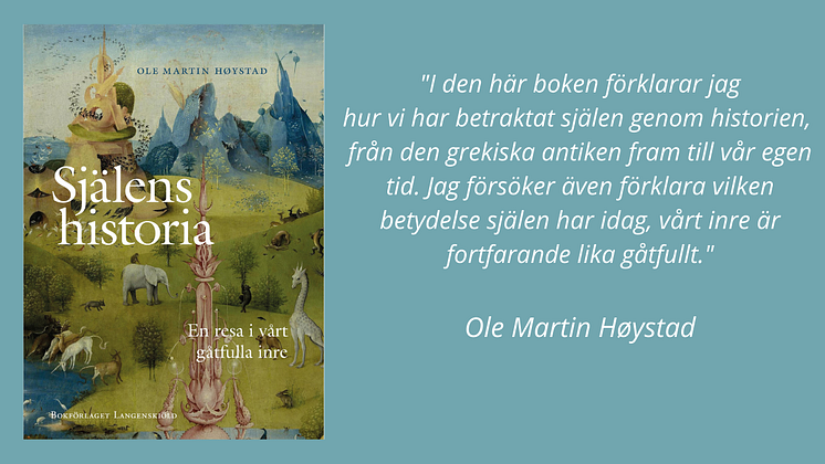 – I den här boken förklarar jag hur vi har betraktat själen genom historien, från den grekiska antiken fram till vår egen tid. Jag försöker även förklara vilken betydelse själen har idag, vårt inre är fortfarande lika gåtfullt, säger Ole Martin Høystad.
