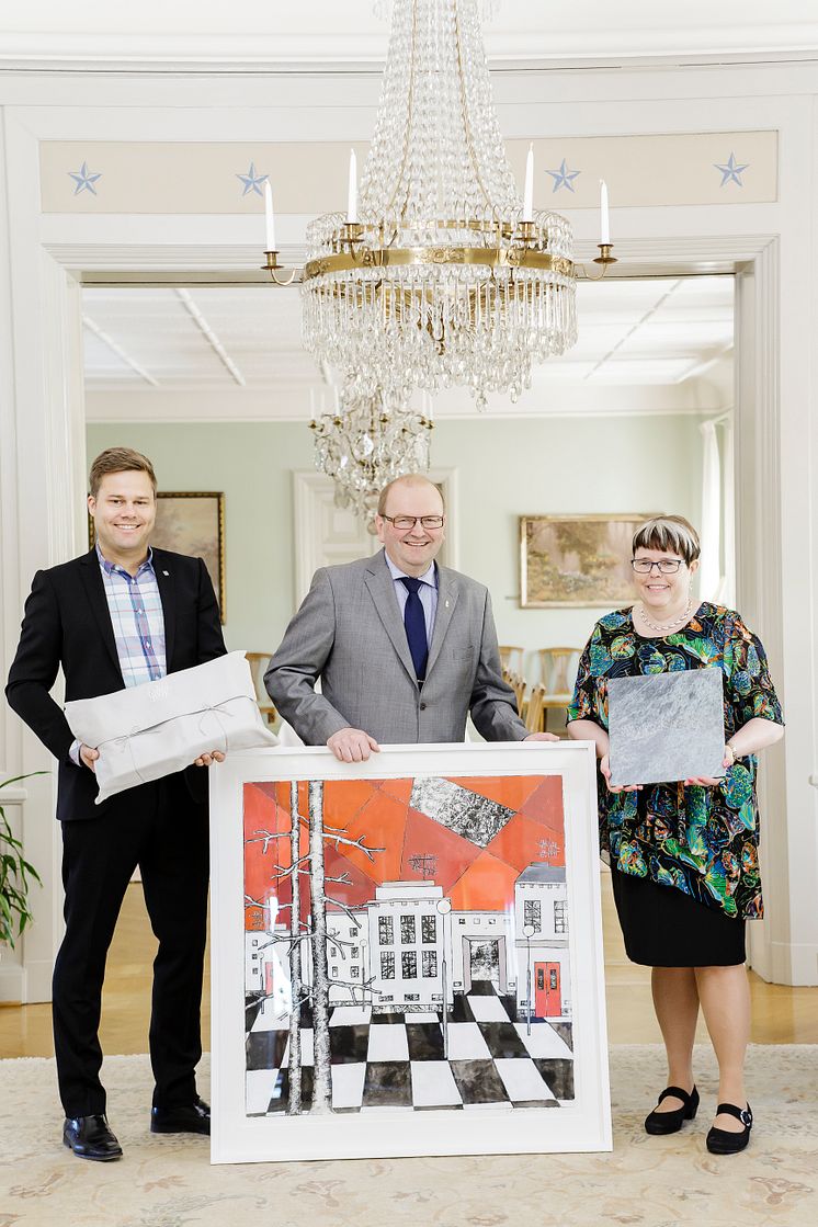 Andreas Johansson, VD Klässbols Linneväveri AB, Kenneth Johansson, Landshövding i Värmlands län och Viola Johansson, Landshövdingens maka